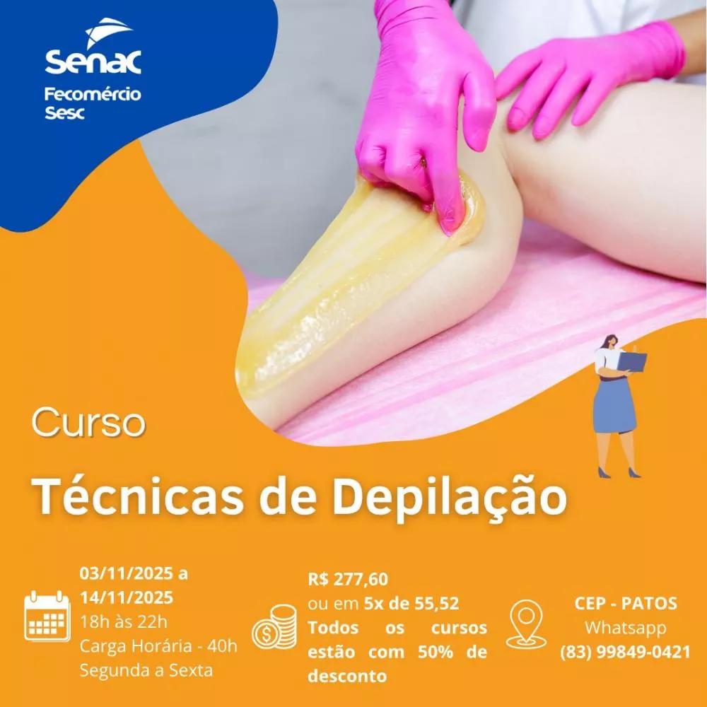 - Técnicas de Depilação - R$ 277,62 ou 5x de R$ 55,53 (03/11 a 14/11 | 18h às 22h)