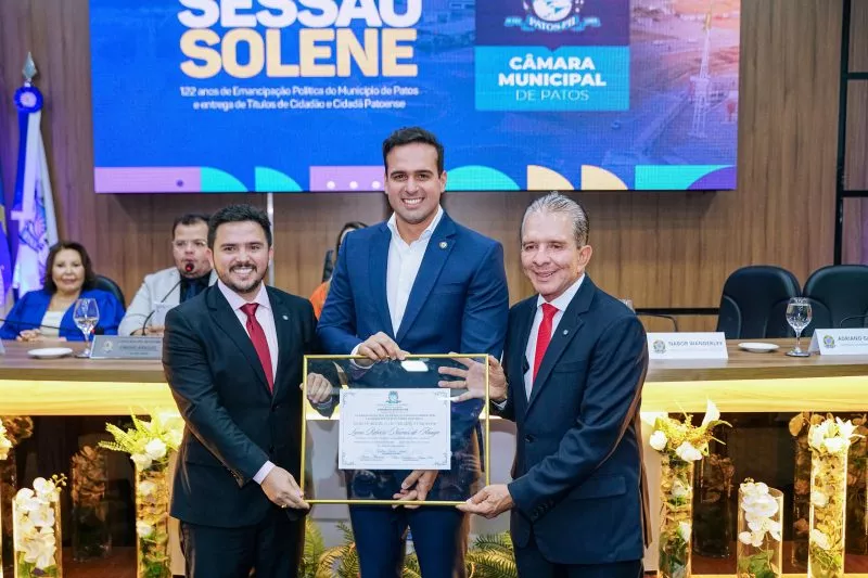 Reconhecimento Lucas Ribeiro recebe título de cidadão patoense durante celebração dos 122 anos de Patos