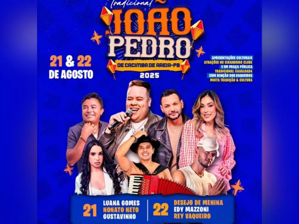 João Pedro 2025 Tradicional João Pedro de Cacimba de Areia começa nesta quinta-feira (21) com muito forró e cultura Mín. 22° Máx. 35°