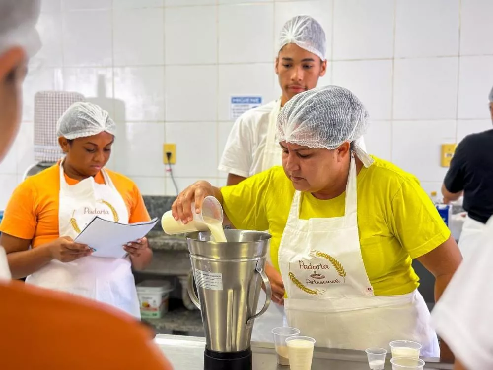 Nesta quarta-feira (22), o Curso de Padaria Artesanal recebeu mais uma turma, desta vez, com participantes do Distrito de Santa Gertrudes. A capacitação, que acontece no Banco de Alimentos, é um momento de aprendizado e troca de experiências, em que as participantes aprendem novas receitas, técnicas de preparo e formas de gerar renda a partir da panificação.