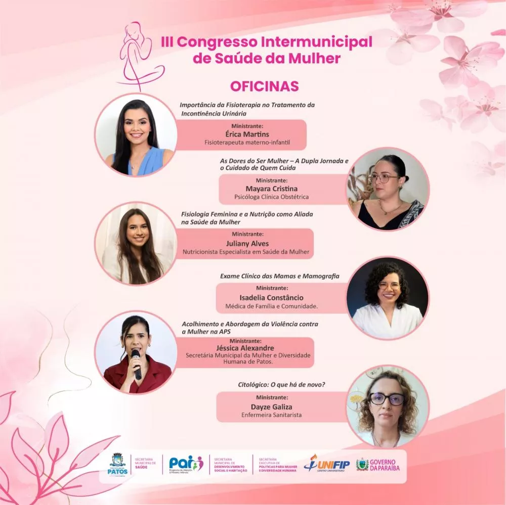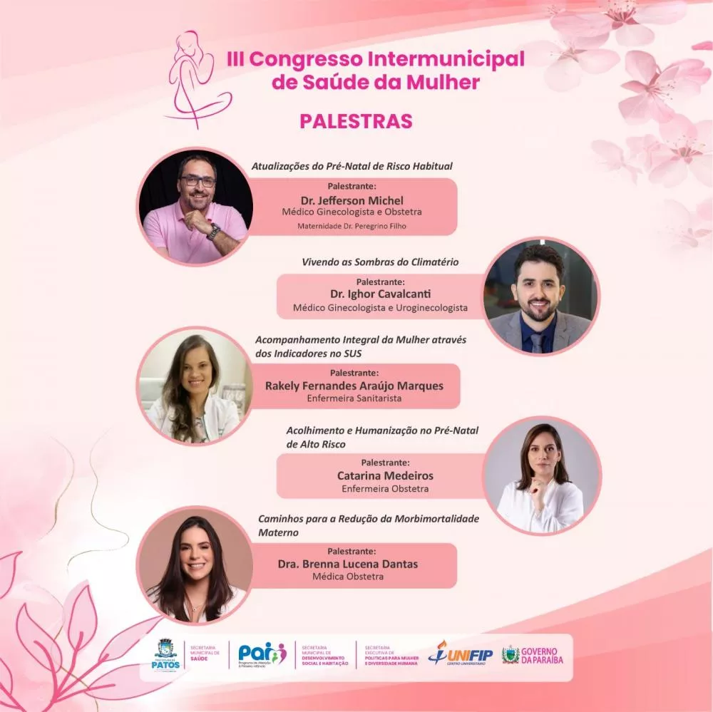 A Prefeitura de Patos, por meio da Secretaria Municipal de Saúde, se prepara para realizar nos dias 31 de outubro e 1º de novembro o III Congresso Intermunicipal de Saúde da Mulher, no Auditório Master da UNIFIP. O evento traz como tema central “Saúde da Mulher em uma Perspectiva Integral: os Caminhos da PNAISM no SUS” e tem como objetivo fortalecer a atenção à saúde da mulher em todas as fases da vida.