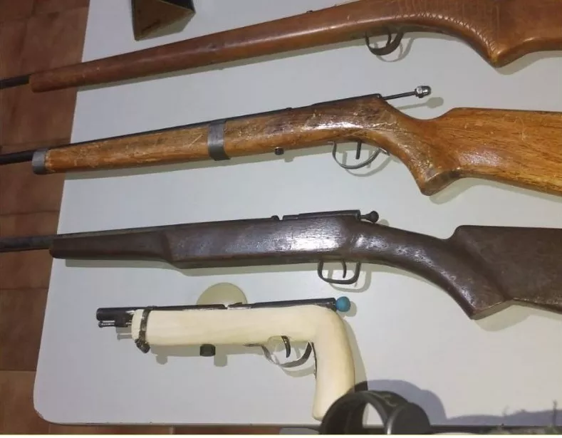 Durante a ação policial, os policiais encontraram quatro armas de fogo artesanais na residência do suspeito, que admitiu ser o proprietário do material. Todo o armamento foi apreendido e encaminhado à Delegacia de Polícia Civil, juntamente com o acusado.