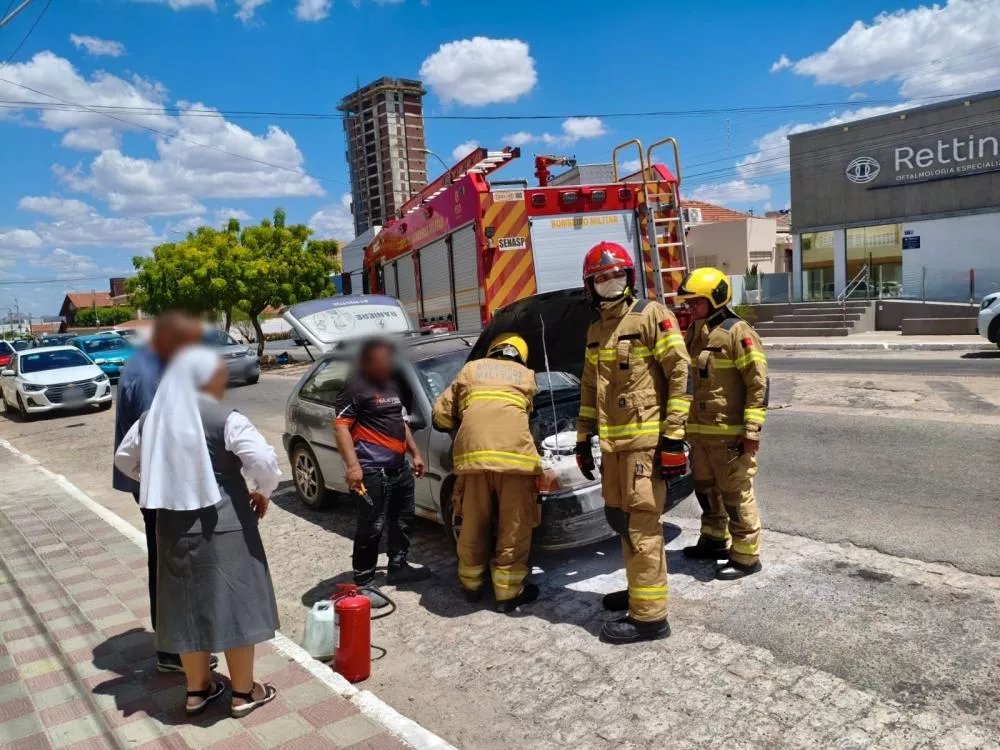 Um princípio de incêndio em um veículo foi registrado no início da tarde desta quarta-feira (12), na Rua Peregrino Filho, em frente ao Colégio Cristo Rei, no Centro de Patos. O carro envolvido foi um Volkswagen Gol Special, ano 2000, de cor cinza.