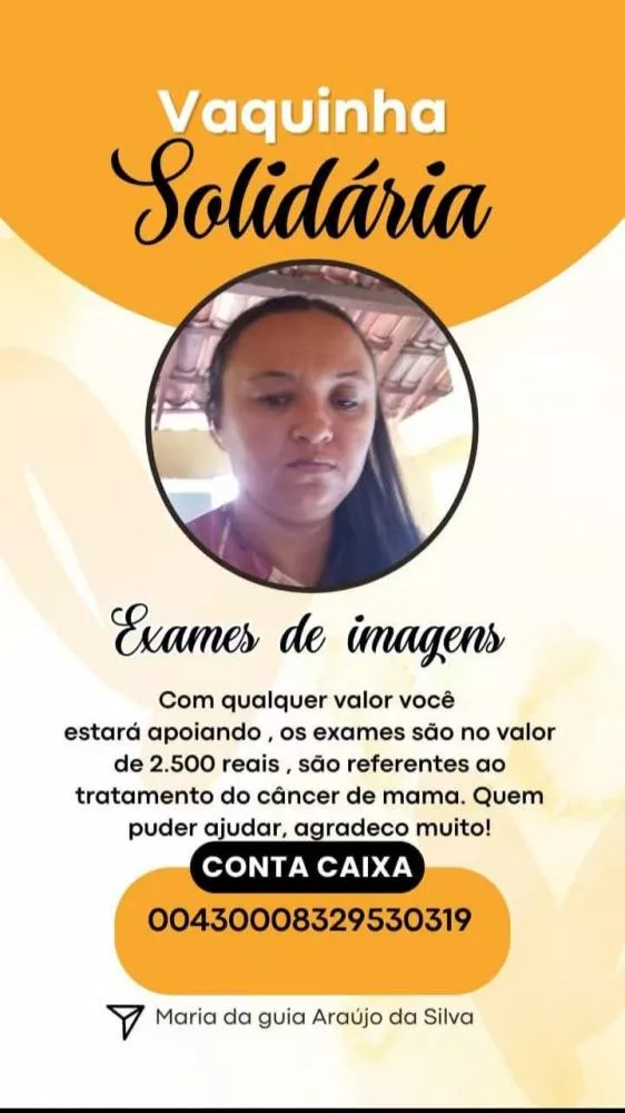 Sem condições de arcar sozinha com todas as despesas, os parentes iniciaram uma vaquinha solidária e pedem o apoio da população. Qualquer valor pode fazer a diferença e ajudar Maria da Guia a seguir com o tratamento.