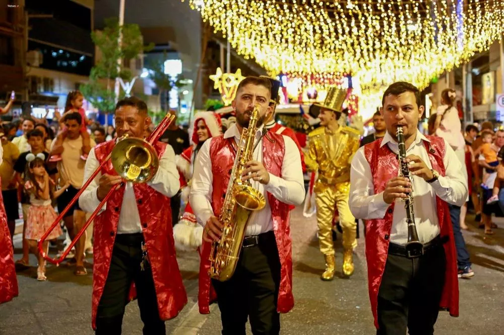 De lá, o desfile seguiu em direção à Praça Edvaldo Mota, onde aconteceu o momento mais aguardado da noite: o acendimento da árvore de Natal e de todo o cenário natalino da praça. Assim como nos anos anteriores, a decoração contempla também o entorno, incluindo a Igreja Nossa Senhora da Conceição e o Centro de Cultura Amaury de Carvalho, que receberam uma fachada iluminada.