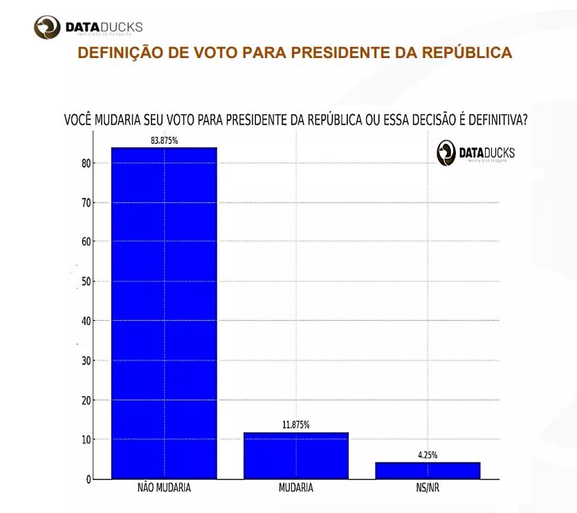 O instituto também perguntou aos eleitores se mudariam o voto ou se a decisão já é definitiva, e a grande maioria dos entrevistados confirmou que não pretende mudar a escolha. Confira: