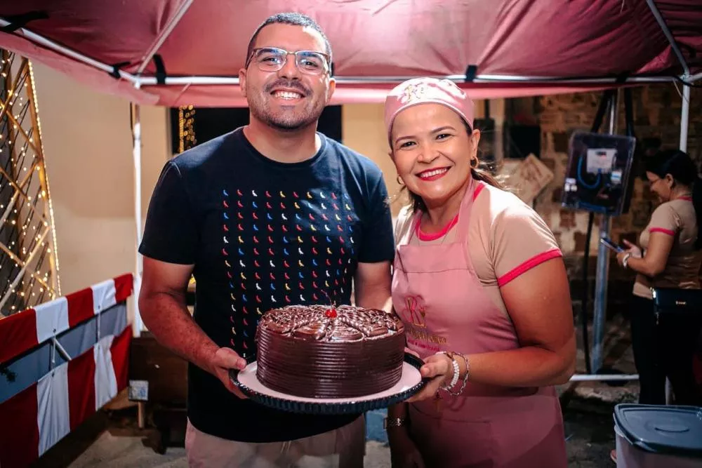 “Estou aqui para falar sobre a nossa feira gastronômica, que estamos realizando pela primeira vez aqui na Praça Edivaldo Mota, a Praça do Natal, e venho convidar vocês a participar da nossa feira que está iniciando agora no dia 19 até o dia 23 de dezembro. É de muita importância que a prefeitura nos deu essa oportunidade, a todos os confeiteiros, de vir mostrar o nosso trabalho. Graças a Deus, todos estamos muito felizes, e que venham participar, não deixem de vir. Muitas delícias, muitas coisas saborosas e com preço excelente”, destacou a confeiteira Rosângela Leitão.