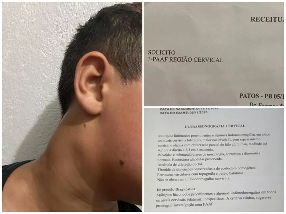 Pedido de Ajuda Família pede ajuda urgente para criança de 11 anos que aguarda exame após apresentar múltiplos caroços no pescoço