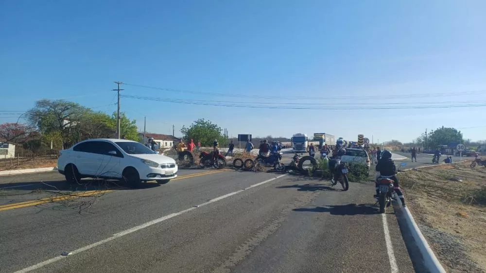 De acordo com a Polícia Rodoviária Federal (PRF), o ato é promovido por cerca de 50 manifestantes, que protestam contra a situação hídrica da região e cobram providências relacionadas à transposição do Açude de Boqueirão. Até o momento, os participantes não apresentaram formalmente as exigências para a liberação da rodovia.