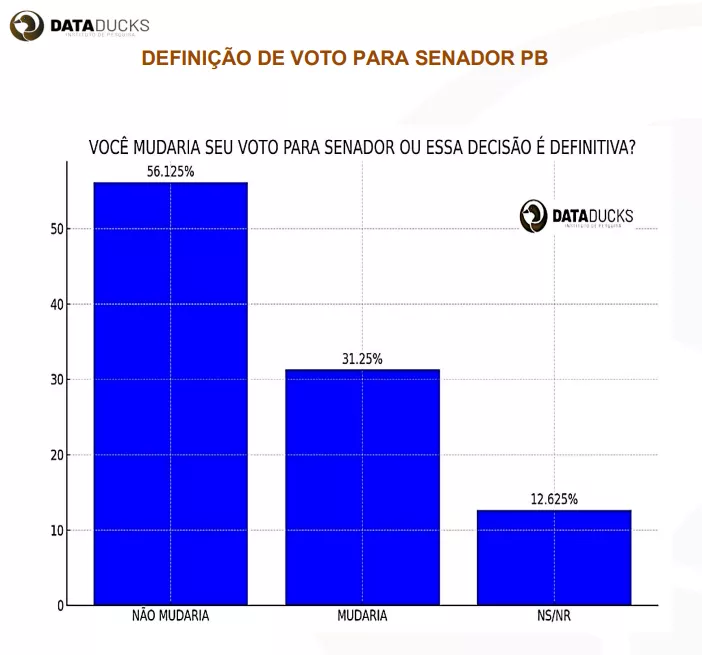 Quando o eleitor foi questionado se o voto para senador é definitivo ou se pode mudar, 56,12% dos entrevistados admitiram que poderiam mudar; e 31,12% disseram que não mudariam mais. Outros 12,62% não souberam ou não responderam à pergunta.