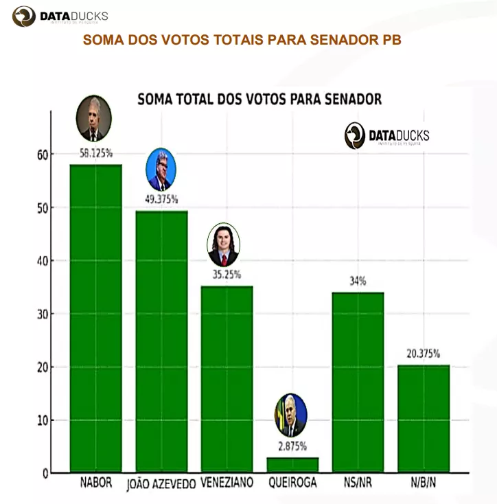 O pré-candidato ao Senado pelo Republicanos, Nabor Wanderley, lidera a corrida por vaga junto ao eleitorado patoense, segundo aponta pesquisa Data Ducks/Patos Online, realizada neste mês de novembro.