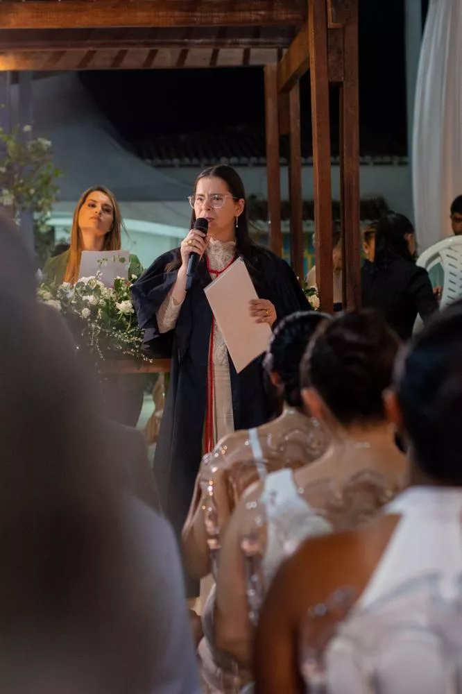 A cerimônia foi celebrada pela juíza Dra. Joscileide Lira, que conduziu o ato com sensibilidade e compromisso institucional. Também prestigiou o evento a Dra. Isabela, reafirmando a importância da ação para a garantia de direitos e cidadania. Em um momento especial de espiritualidade, o pastor Alécio Bruno realizou uma oração com os casais, pedindo bênçãos para essa nova etapa em suas vidas.