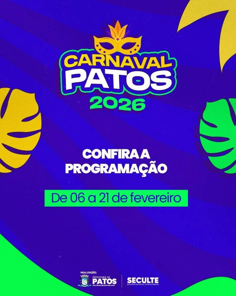 Carnaval 2026 Prefeitura de Patos e Liga dos Blocos anunciam programação do Carnaval de Patos 2026. Confira!