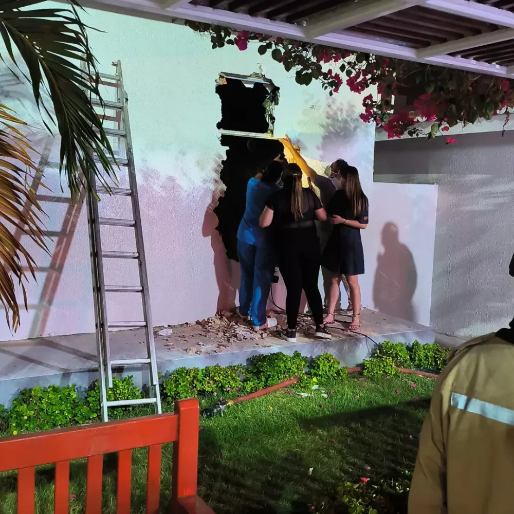Em razão da grande quantidade de fumaça, as guarnições não conseguiram acessar o local pelo interior da unidade. Dessa forma, o combate às chamas foi realizado por meio de uma abertura na parede externa, o que possibilitou uma atuação mais segura e eficaz. O foco do incêndio estava localizado embaixo de uma das mesas cirúrgicas.