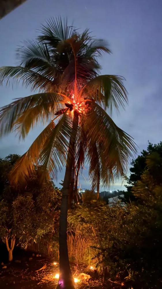 Queda de Raio Raio atinge área rural de Santa Terezinha, destrói coqueiro e assusta moradores durante a madrugada