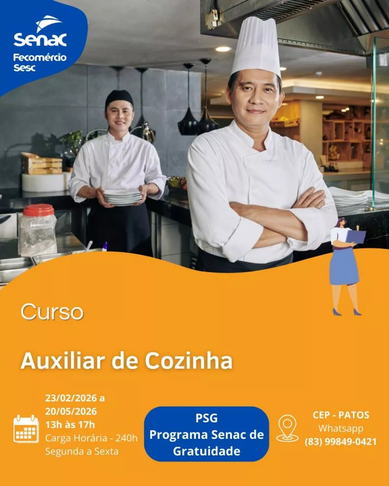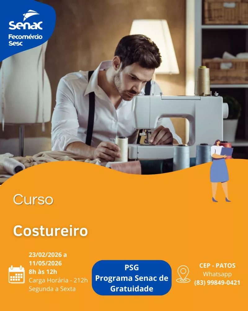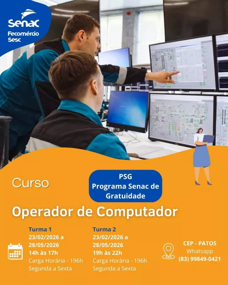 O Senac Patos está com inscrições abertas para vários cursos gratuitos por meio do Programa Senac de Gratuidade (PSG), iniciativa voltada à qualificação profissional da população. Algumas das turmas já têm início previsto para o mês de fevereiro, ampliando as chances de inserção e recolocação no mercado de trabalho.