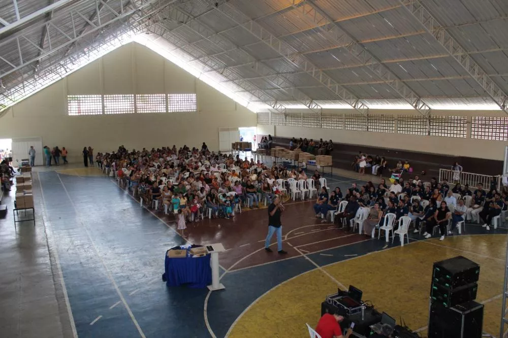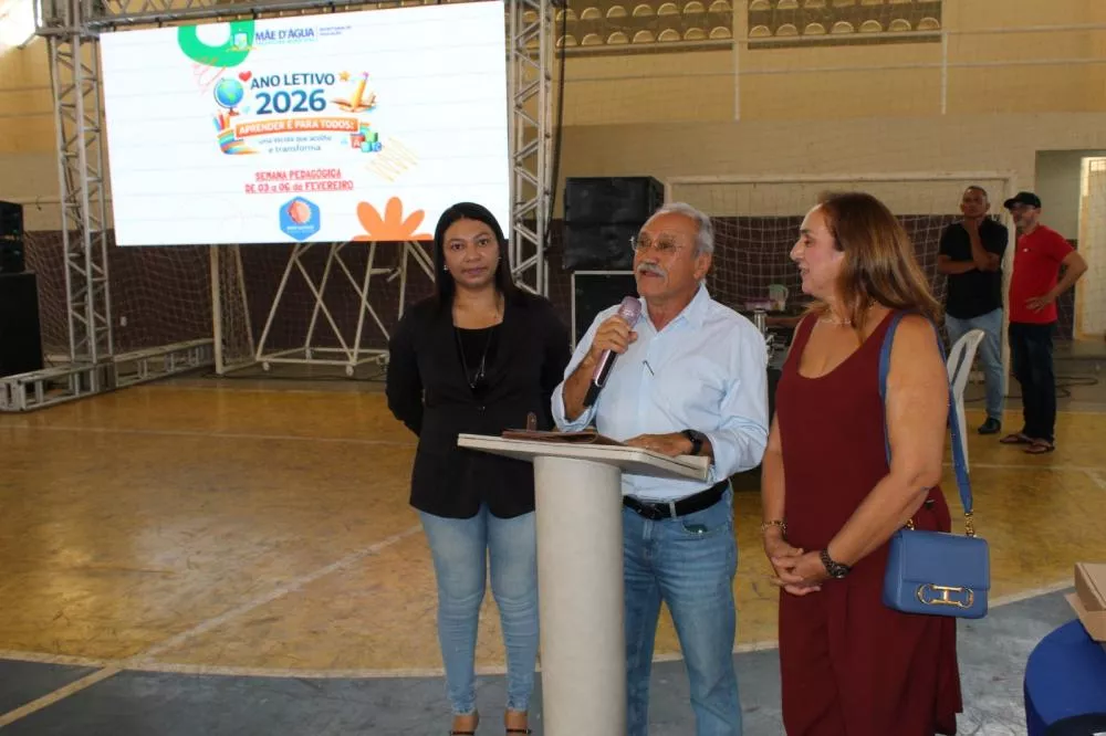Assinalando a abertura do Ano Letivo de 2026, a Secretaria de Educação do município de Mãe d’Água desenvolveu uma série de atividades no período de 03 a 06 de fevereiro, com abertura na terça-feira e culminância na manhã desta sexta-feira. O encerramento reuniu famílias e alunos da Rede Municipal de Ensino, no Ginásio “O Totão”, onde foi realizada uma palestra com o psicólogo João Paulo de Araújo, que abordou o tema “Família e Escola: a parceria do sucesso escolar”, antecedendo a entrega da nova farda e do kit de material escolar para todos os alunos.