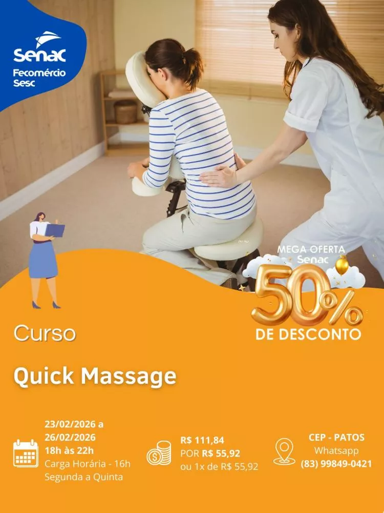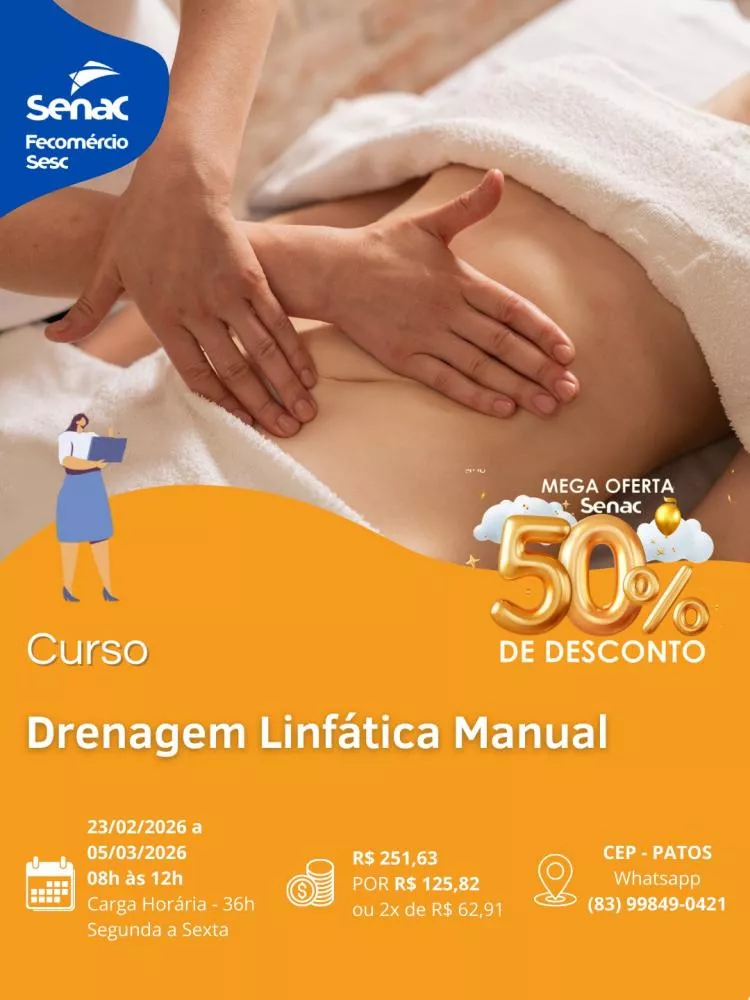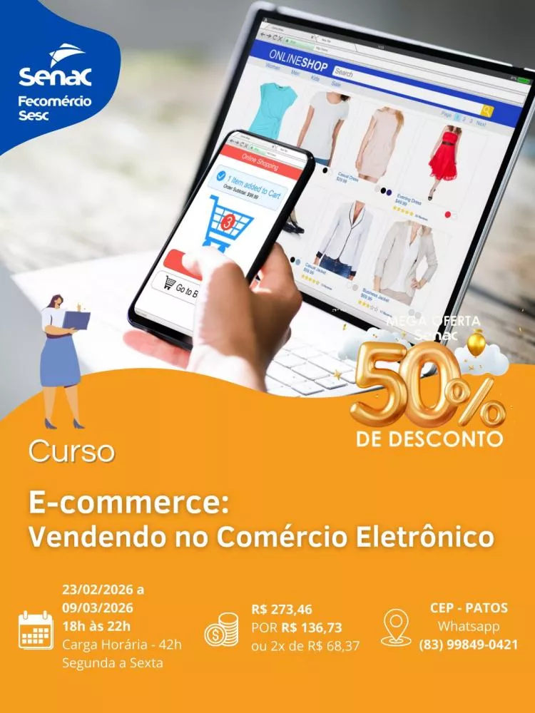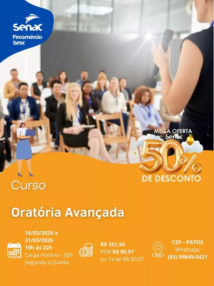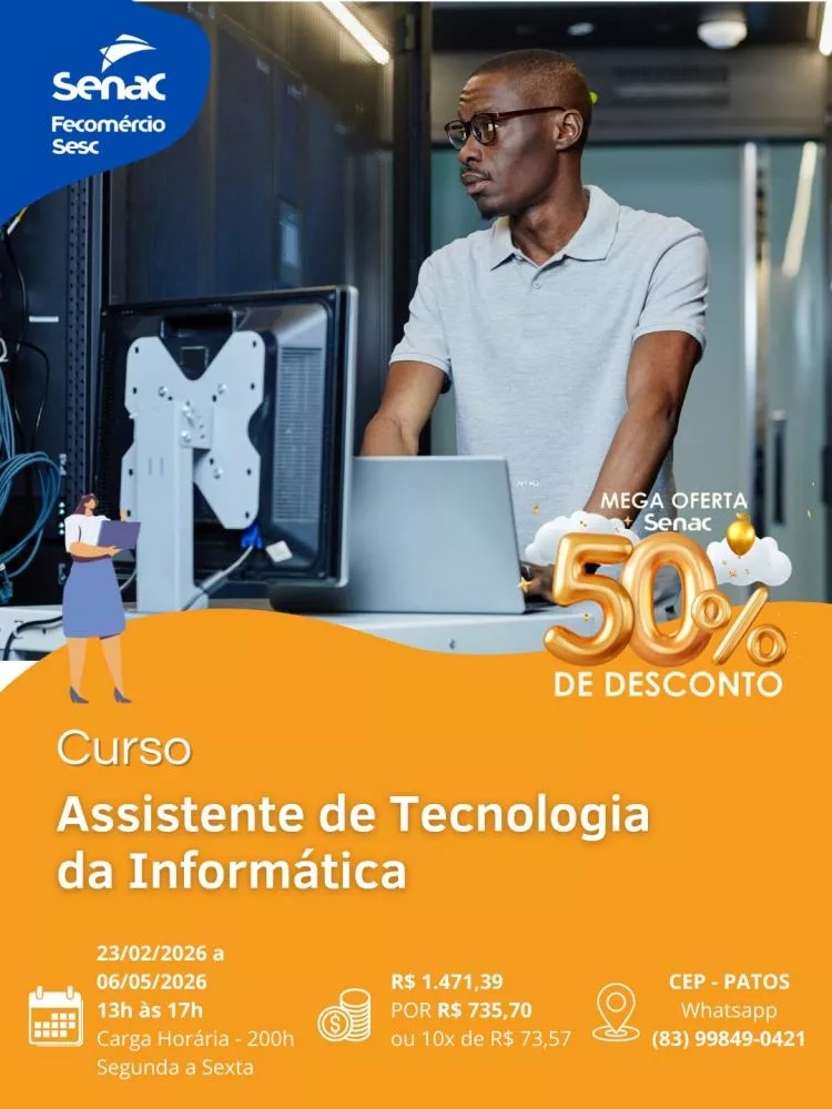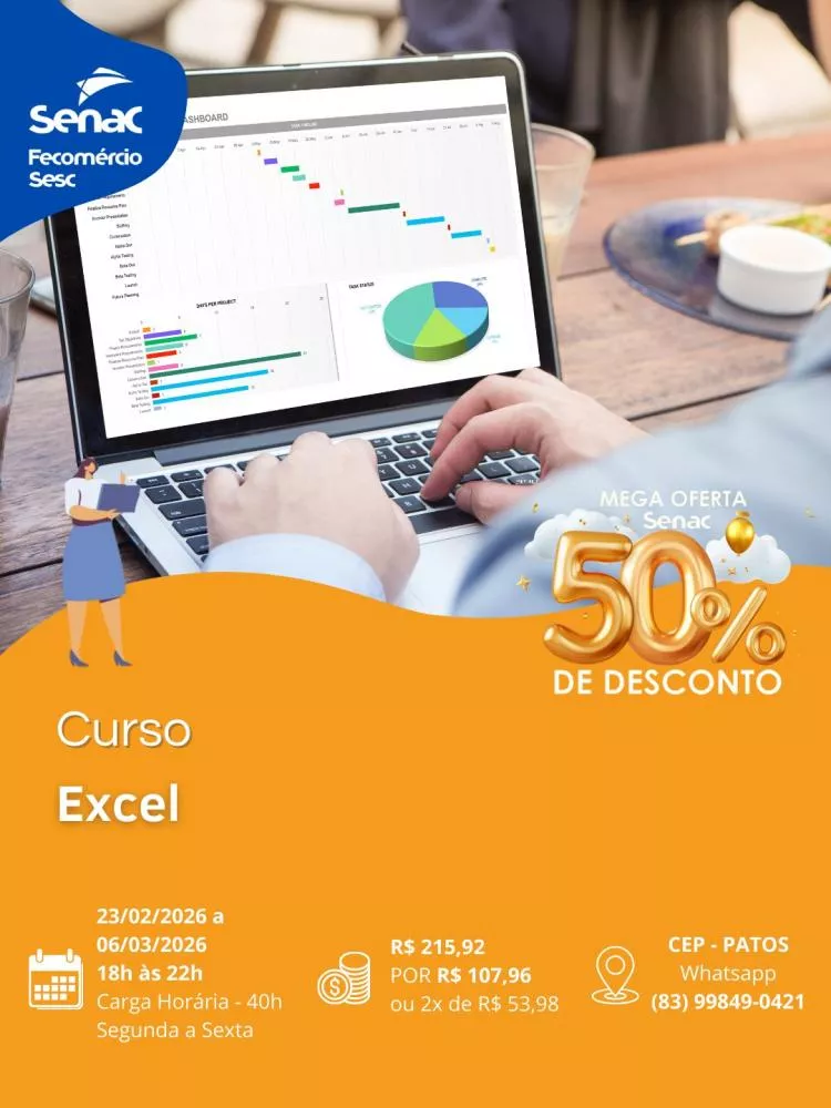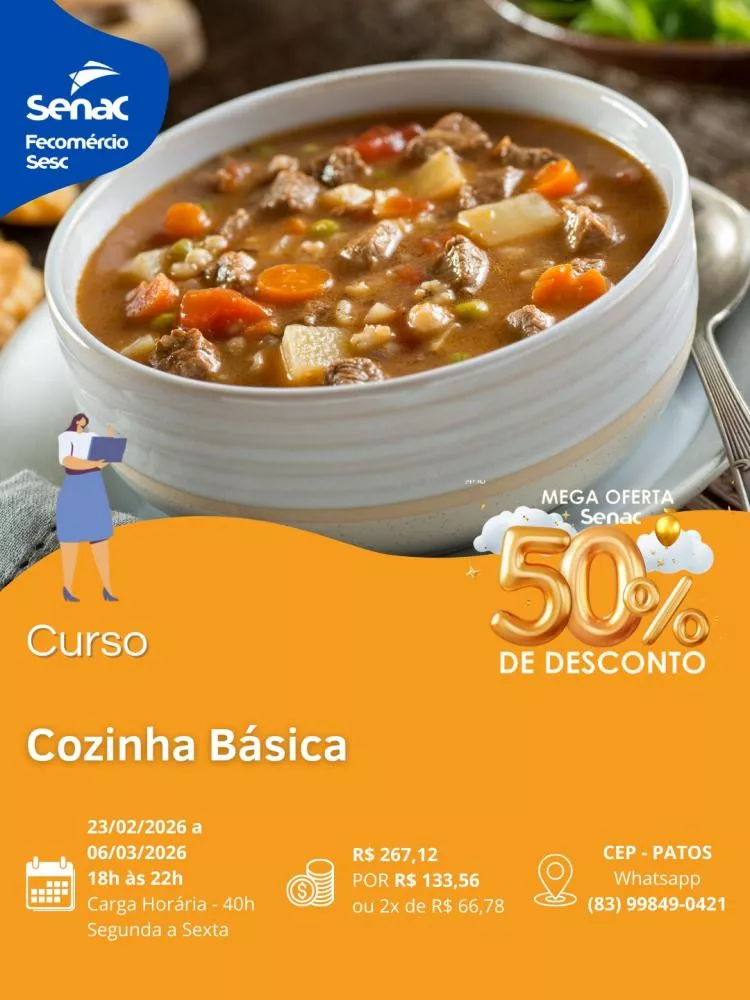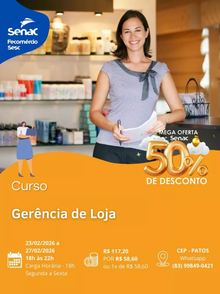 O Serviço Nacional de Aprendizagem Comercial (Senac) da Paraíba está com inscrições abertas para novos cursos profissionalizantes neste mês de fevereiro, oferecendo 50% de desconto em todas as formações disponíveis. As oportunidades abrangem diversas áreas do mercado, como Gastronomia, Tecnologia da Informação, Comércio, Gestão, Moda, Beleza e Saúde.