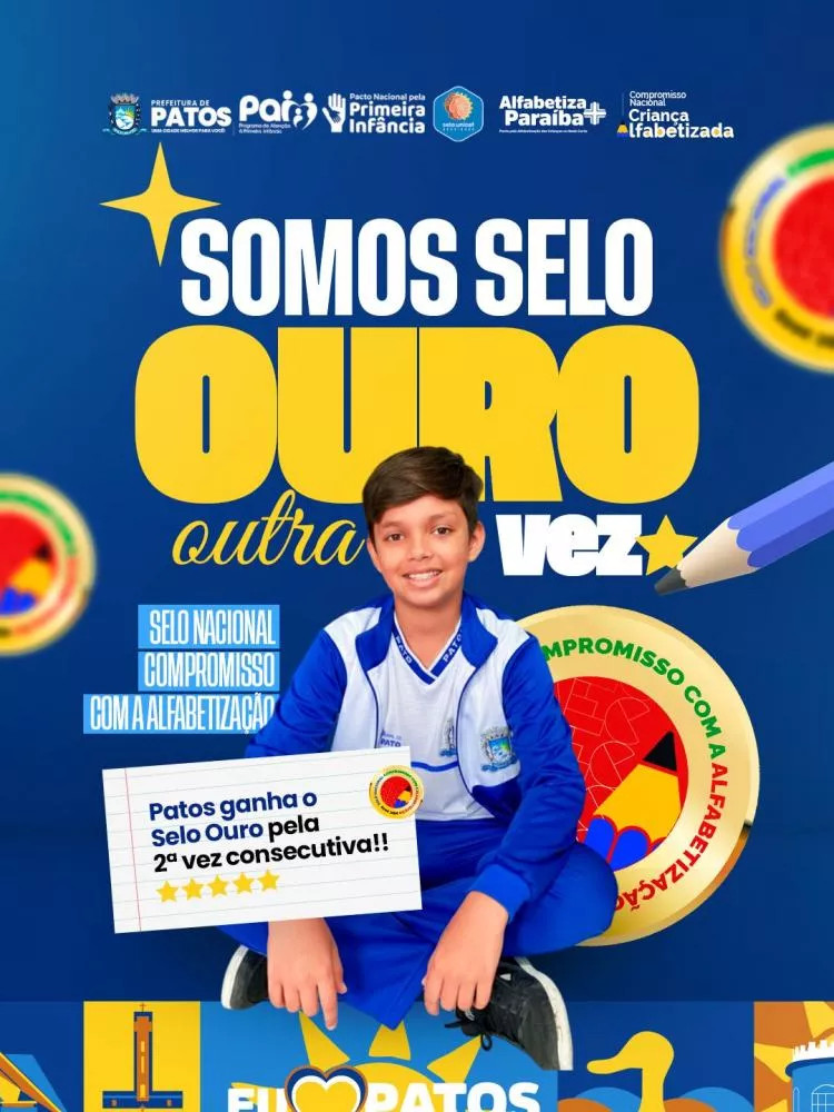 Pelo segundo ano consecutivo, o município de Patos conquistou o Selo Ouro de Compromisso com a Alfabetização – 2026, reconhecimento concedido pelo Ministério da Educação (MEC) e divulgado nesta segunda-feira, 9 de fevereiro.