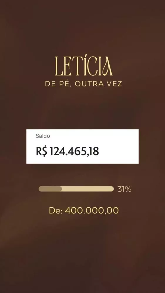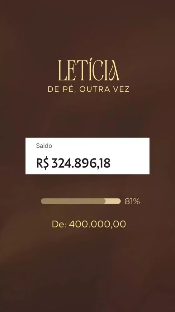 Em publicação nas redes sociais, Letícia agradeceu emocionada. “Gente, o Richarlison nos viu, ele nos respondeu e nos enviou R$ 200 mil pra nossa campanha. Muito obrigada a todos que fizeram parte disso. Está faltando muito pouco. Obrigada, Richarlison, você fez a diferença na minha vida”, declarou.