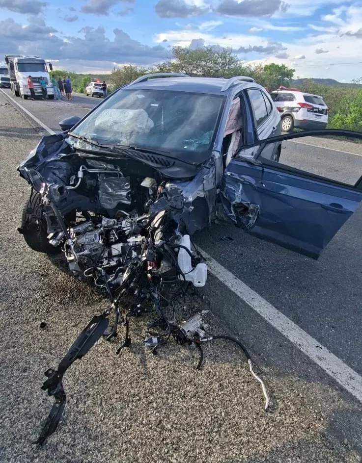 A colisão envolveu três veículos: um Volkswagen Nivus Highline azul, com placa de Campina Grande; um Chevrolet Onix preto, também com placa de Campina Grande; e um Jeep Renegade Longitude cinza, com placa do Rio de Janeiro. O maior impacto foi registrado entre o Nivus e o Onix, que ficaram com a parte frontal bastante danificada.