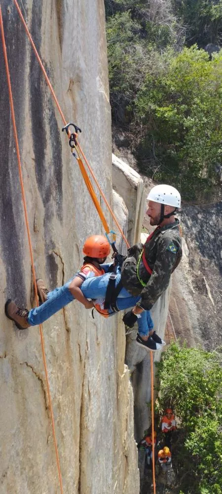 Antes das descidas, os instrutores da equipe realizaram um treinamento completo, com orientações sobre técnicas, normas de segurança e uso correto dos equipamentos. Adultos e crianças participaram das atividades sempre acompanhados de perto pelos profissionais, garantindo segurança e confiança.