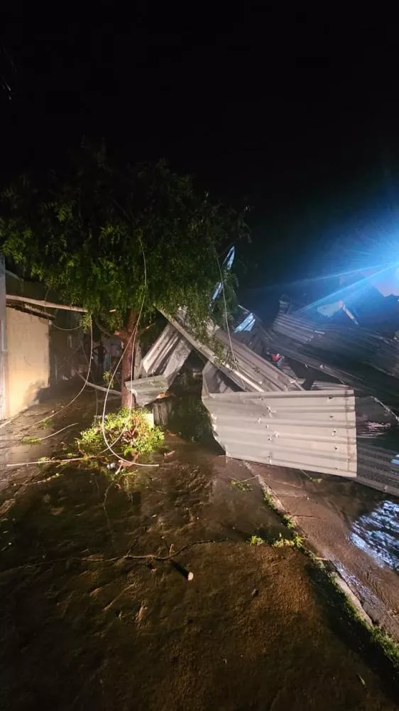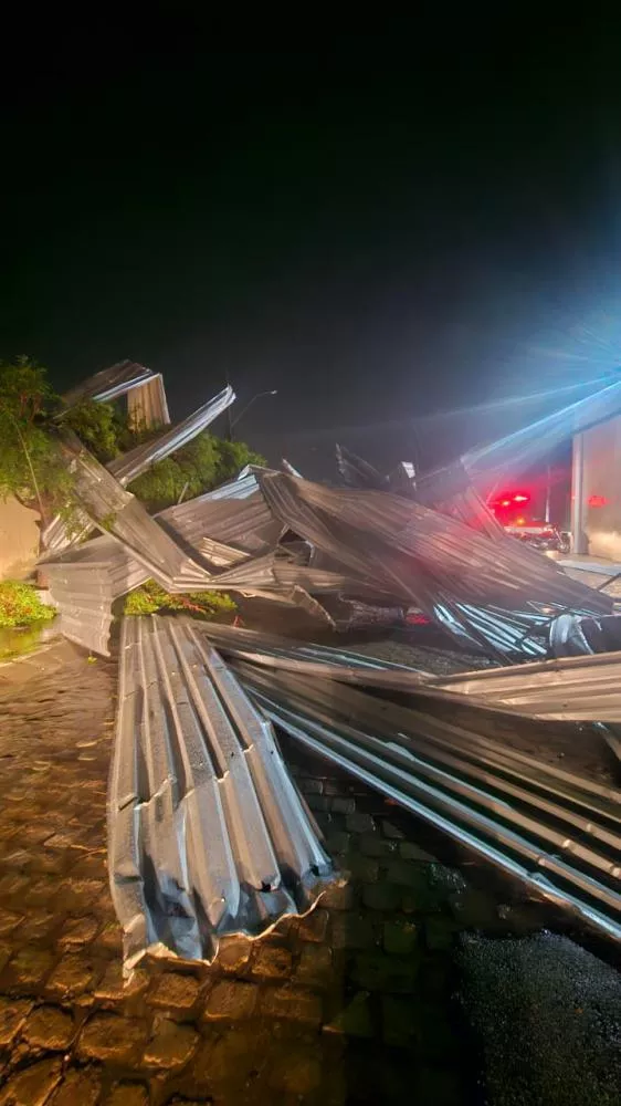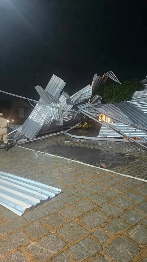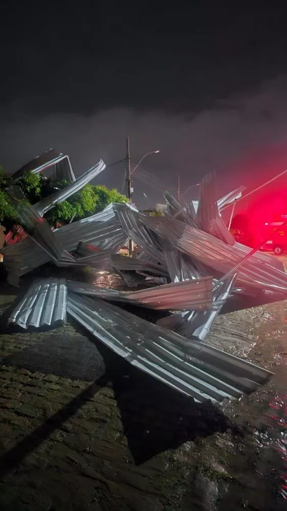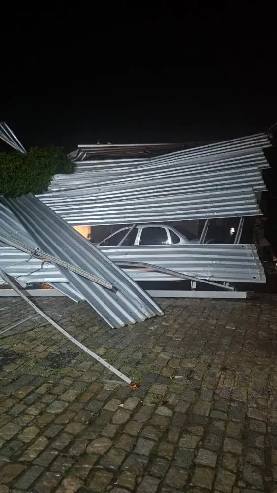 Em razão das intensas precipitações e dos ventos registrados no período, a estrutura não resistiu e acabou sendo arrancada, sendo arremessada para uma rua adjacente. O telhado caiu sobre duas residências e atingiu também um veículo.