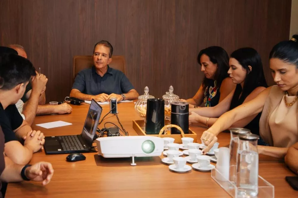 O prefeito de Patos, Nabor Wanderley, e o vice-prefeito Jacob Souto se reuniram nesta terça-feira (17), no gabinete municipal, com o secretário de Ciência, Tecnologia, Inovação e Desenvolvimento Econômico, Vinícius Campos, e a gerente regional do SEBRAE em Patos, Anna Stefânia, para discutir a organização do Festival Gastronômico de Santa Gertrudes, conhecido como Festa da Galinha de Capoeira.