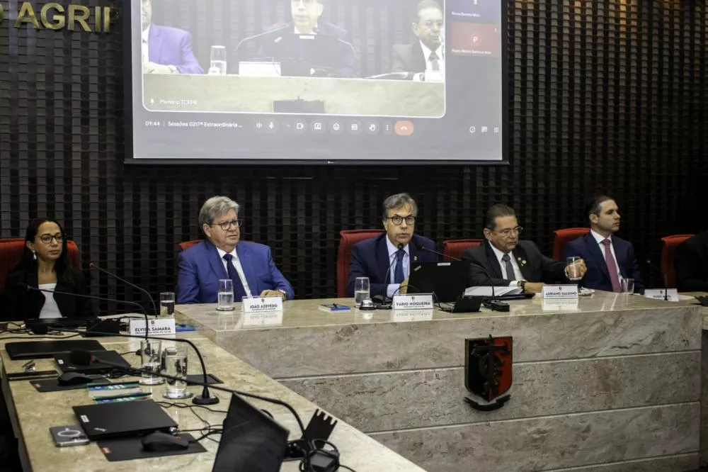 A sessão solene de posse foi conduzida pelo conselheiro Fábio Nogueira, presidente do TCE-PB, e contou com a presença de várias autoridades, entre as quais, o governador do Estado, João Azevêdo, o vice-governador Lucas Ribeiro, o presidente da Câmara dos Deputados, Hugo Motta, o presidente do TJPB, Frederico Coutinho e o presidente da Assembleia Legislativa, deputado Adriano Galdino, que compuseram a mesa, ao lado, também, da procuradora geral do Ministério Público de Contas junto ao TCE, Elvira Samara Pereira de Oliveira.