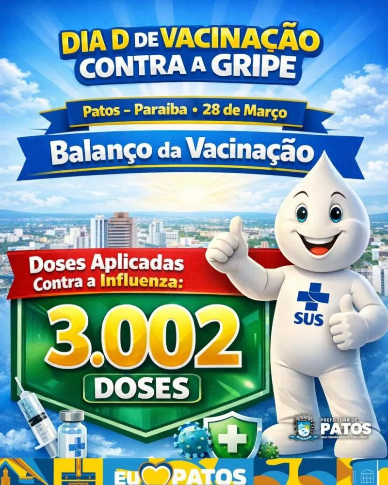 A população de Patos deu um importante exemplo de cuidado com a saúde neste sábado, 28 de março, durante a realização do Dia D de vacinação contra a Influenza. Ao todo, foram aplicadas 3.002 doses da vacina, número considerado expressivo e que demonstra a adesão dos grupos prioritários à campanha.