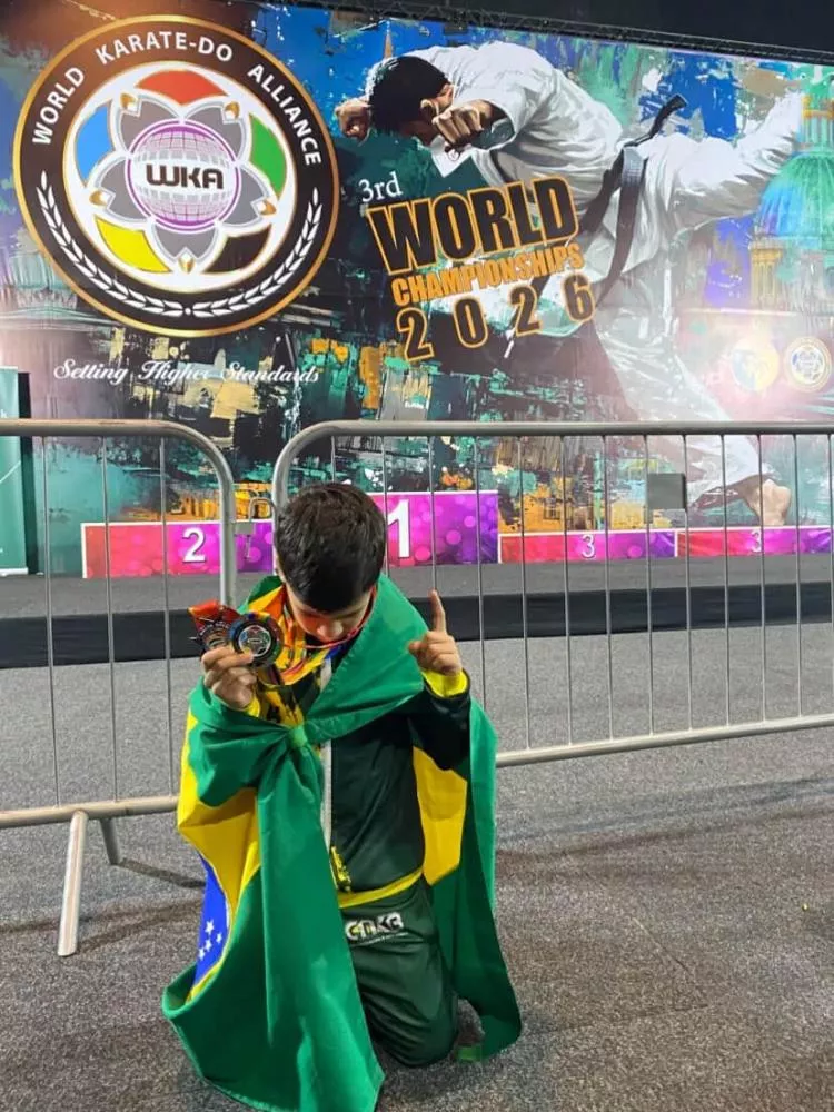 Luccas subiu ao pódio ao garantir o 2º lugar na categoria Kata Mirim tanto no Open Internacional quanto no Campeonato Mundial, resultados que consolidam o talento do atleta patoense no cenário internacional.