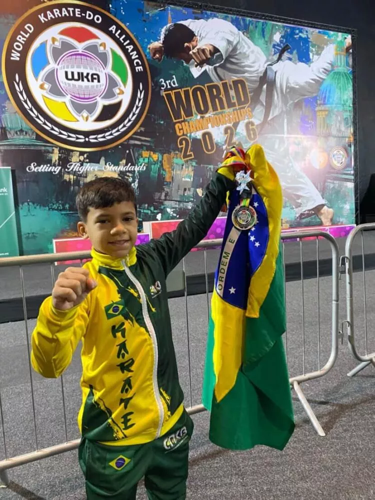 Com apenas 11 anos, o jovem já mira novos desafios e segue motivado para buscar ainda mais conquistas no karatê.