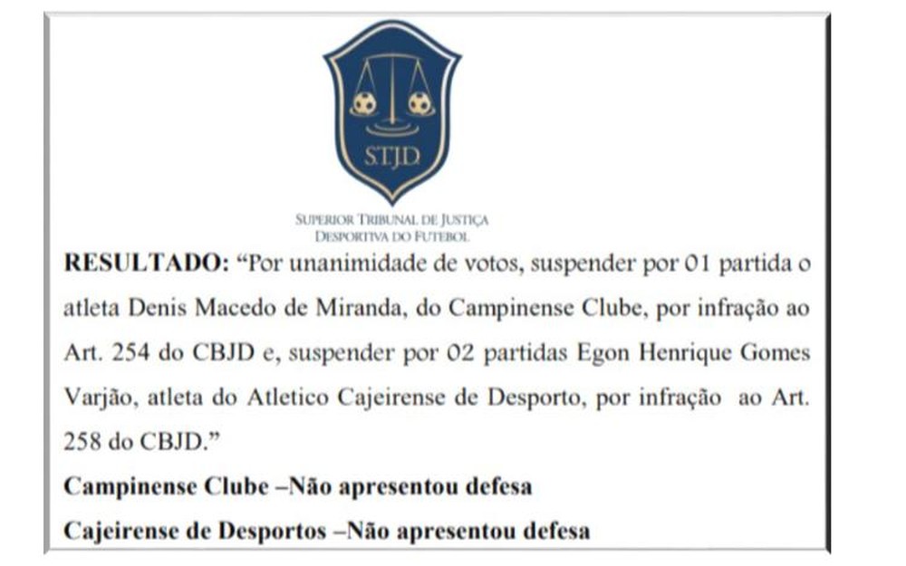 O Sport Lagoa Seca alega que o Atlético de Cajazeiras não recorreu do resultado e que, por isso, Egon tinha que cumprir a pena no Paraibano deste ano. De acordo com o Código Brasileiro de Justiça Desportiva (CBJD), em seu artigo 171, no capítulo que fala das penalidades, a suspensão se não puder ser cumprida na competição em que foi registrada a infração, ela tem que ser cumprida na partida subsequente de uma competição organizada pela mesma entidade organizadora.
