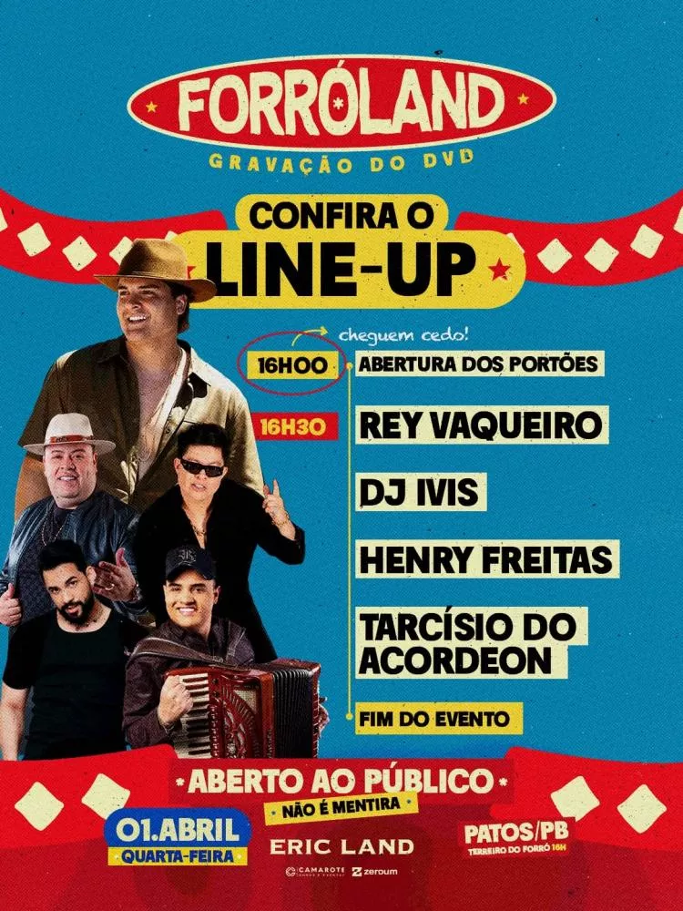 O “Forróland” contará ainda com participações especiais de nomes de destaque no cenário musical, como Rey Vaqueiro, Tarcísio do Acordeon, Henry Freitas e DJ Ivis, além de outros artistas convidados. A proposta é unir diferentes estilos e segmentos dentro do universo do forró.