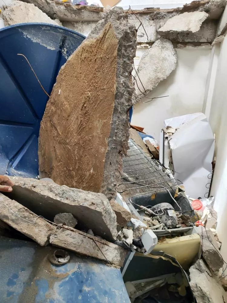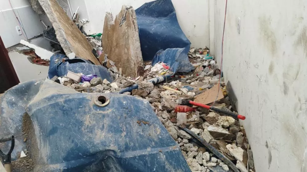 Segundo relatos, a estrutura teria cedido após o peso de duas caixas d’água, provocando a queda do teto e destruindo parte de dois apartamentos. Os danos materiais são significativos, atingindo móveis e a própria estrutura dos imóveis, gerando preocupação e revolta entre os moradores, em sua maioria estudantes universitários.