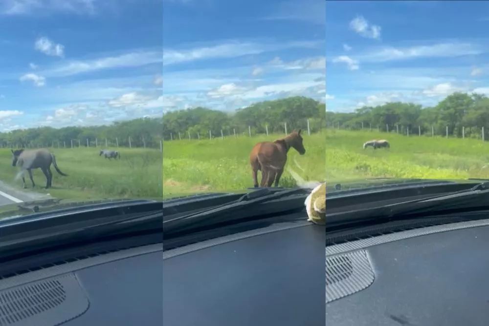 ALERTA NAS RODOVIAS Equipe do Patos Online flagra cavalos soltos às margens da BR-361, em Patos
