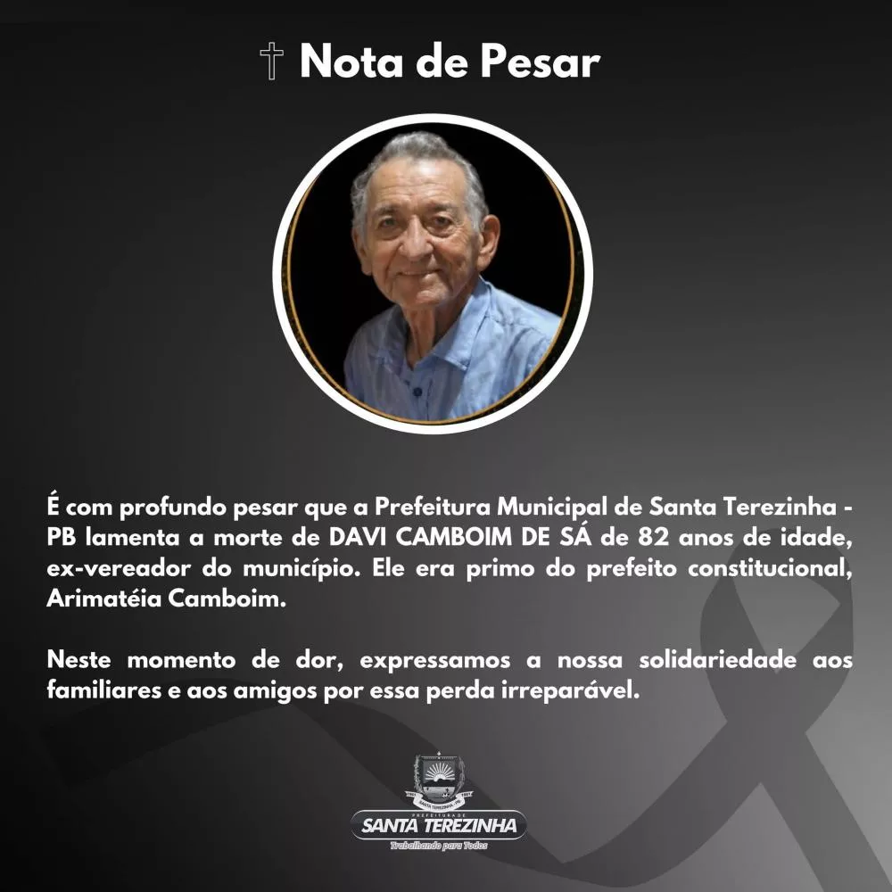 Faleceu na madrugada deste domingo (26/04/2026), no Complexo Hospitalar Regional de Patos, o aposentado Davi Camboim de Sá, de 82 anos. Ele residia na Fazenda Santana, na zona rural do município.