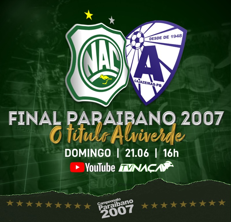 Continuando o mês das reprises de jogos históricos, a TV Naça, canal oficial do Nacional de Patos no Youtube, fará uma nova live neste domingo, 21 de junho, às 16 horas, com a reprise do lendário jogo contra o Atlético de Cajazeiras que deu o título de campeão paraibano ao Canário do Sertão.