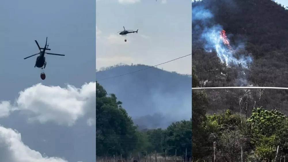 Incêndio criminoso Corpo de Bombeiros intensifica combate a incêndio na Serra do Cruzeiro, em São José do Bonfim, com apoio do helicóptero Acauã