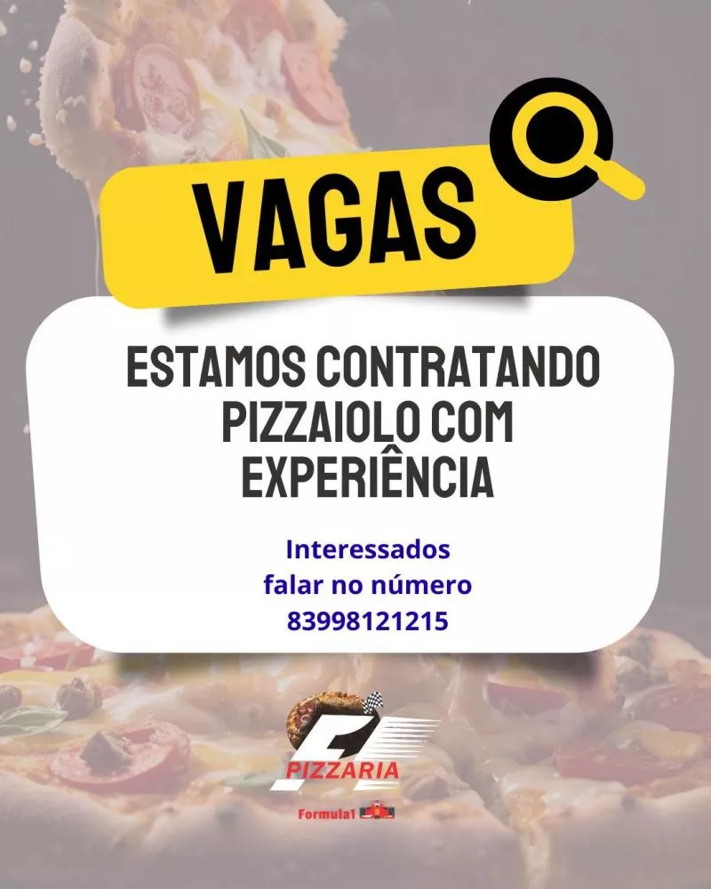 Vaga de Emprego Pizzaria Fórmula 1 contrata pizzaiolo com experiência para início imediato em Patos-PB
