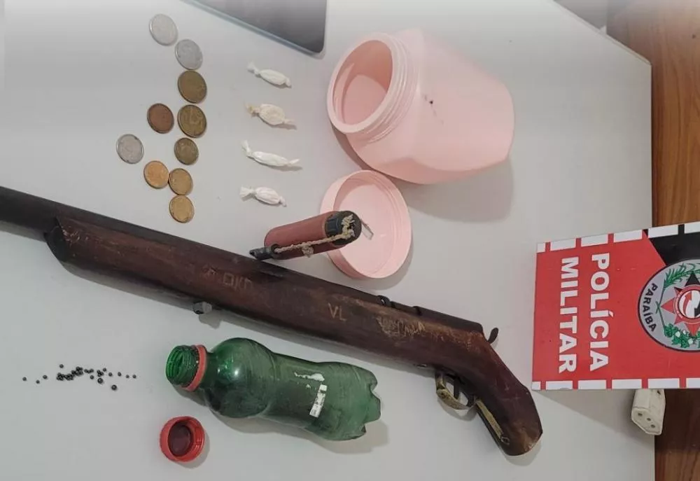 Apreensão de arma Polícia apreende arma de fogo e drogas na zona rural de São Sebastião de Cacimbas