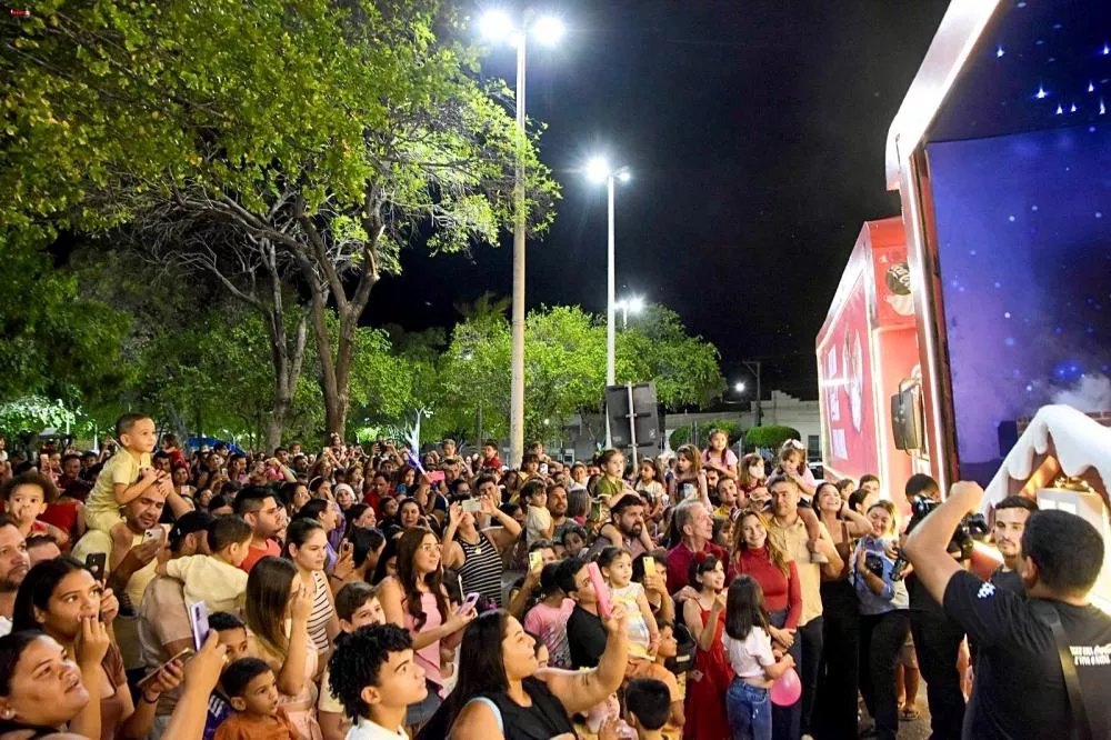 O clima de Natal chegou com muito encanto, iluminando as ruas de Patos nesta segunda-feira (27). A passagem da tradicional Caravana de Natal da Coca-Cola transformou a cidade em um verdadeiro cenário de luz e emoção, reunindo centenas de famílias e amigos que aguardavam nas calçadas e praças para viver esse momento especial.