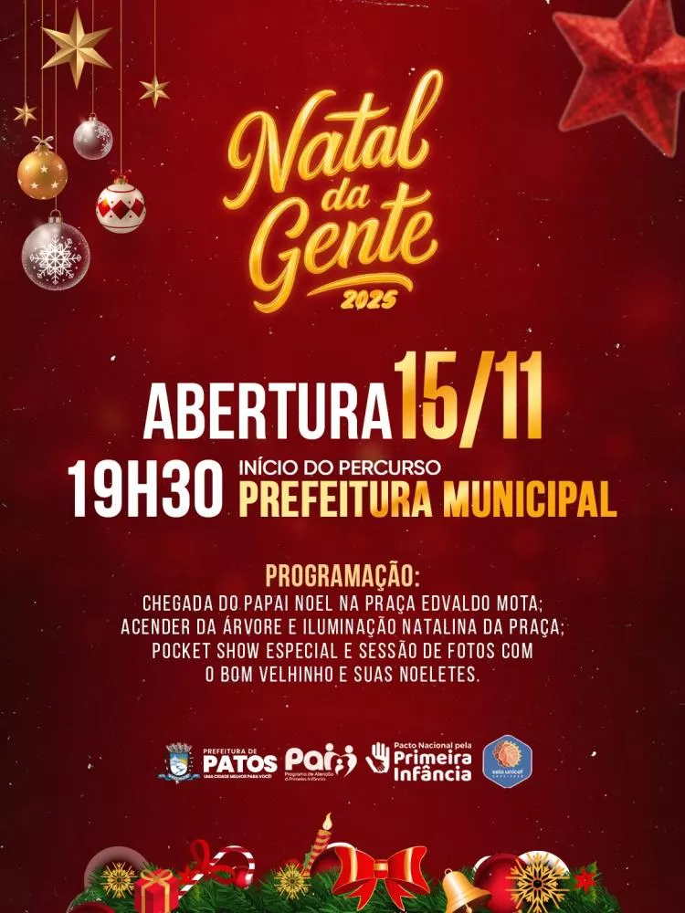 Natal da Gente Patos dá início ao “Natal da Gente” neste sábado com acendimento da árvore de Natal, desfile e pocket show