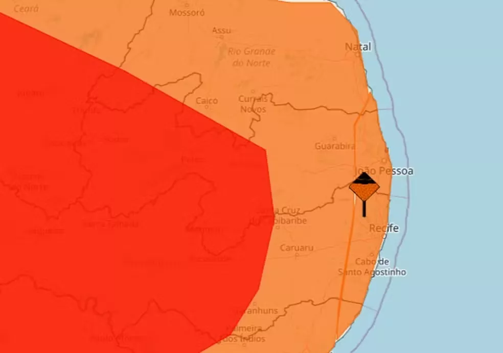 O alerta mais grave, classificado como grande perigo (vermelho), atinge dezenas de cidades do Sertão paraibano, entre elas Patos, Sousa, Cajazeiras, Pombal e Itaporanga. Nestas áreas, a previsão é de chuvas superiores a 60 mm por hora ou acima de 100 mm por dia, o que representa alto risco de alagamentos de grande proporção, transbordamento de rios e deslizamentos de encostas, especialmente em áreas vulneráveis.