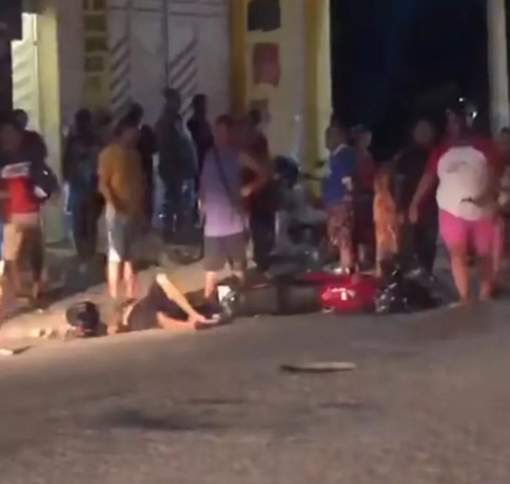 Acidente Acidente entre motocicletas deixa mulher e criança feridas no Centro de Teixeira